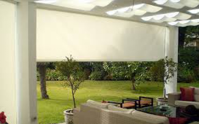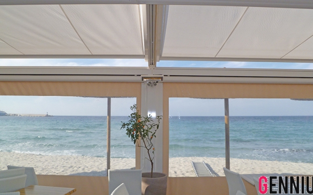 Sistema complementario para toldos planos como cerramiento vertical, con o sin guías laterales.