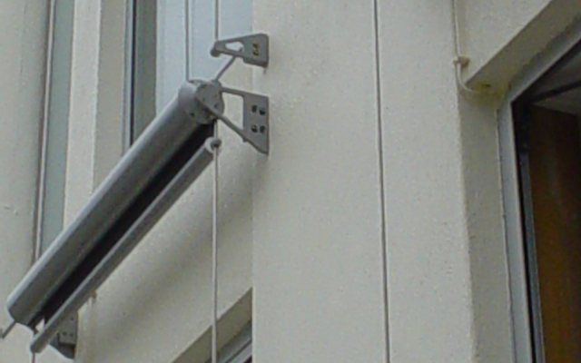 Su sistema de guiado es por cable o por varilla, ambas opciones con posibilidad de fijarse a la pared o al suelo. El Maxiscreen puede llevar además el sistema cofre para la protección de la lona.